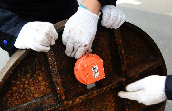 这种设备看起来很普通,是一个直径约为10厘米的深色小圆盒,但它的作用却非常重要,具备编号和定位功能。一旦窨井盖安装了井盖监控器,就相当于拥有了身份证和定位仪。
