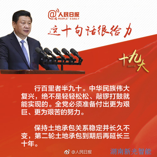 今天,中国共产党第十九次全国代表大会在北京隆重开幕。这次大会,是在全面建成小康社会决胜阶段、中国特色社会主义发展关键时期召开的一次十分重要的大会,我们党将明确宣示举什么旗、走什么路、以什么样的精神状态、担负什么样的历史使命、实现什么样的奋斗目标,将提出具有全局性、战略性、前瞻性的行动纲领。开好这次大会,事关党和国家事业继往开来,事关中国特色社会主义前途命运,事关最广大人民根本利益,对决胜全面建成小康社会、夺取中国特色社会主义伟大胜利、实现中华民族伟大复兴的中国梦,具有重大的政治意义、理论意义、实践意义。