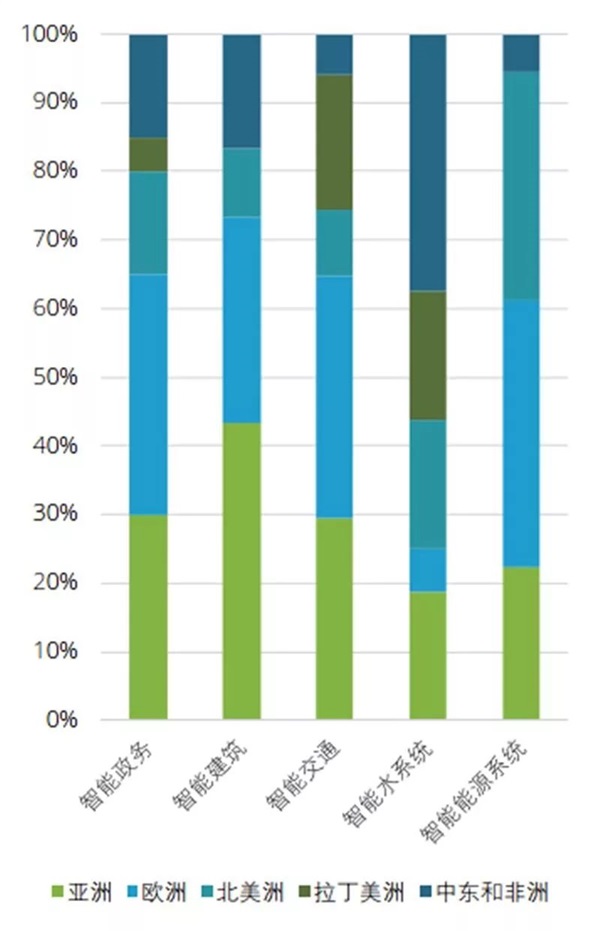 智慧城市解决方案市场日渐繁荣, 亚太地区市场的发展增速高于欧洲与美洲地区, 并逐渐实现弯道超车。亚太地区有其独特的国情和城市发展需求, 与欧美在智慧城市的重点建设项目上侧重不同。