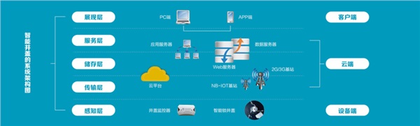 智能井盖采用了智能传感、窄带蜂窝物联网、云计算等技术,通过构建物联网平台,采用NB-IoT无线联网方式,无须布线,快速实现城市井盖的智能实时监测。其运作原理如下: