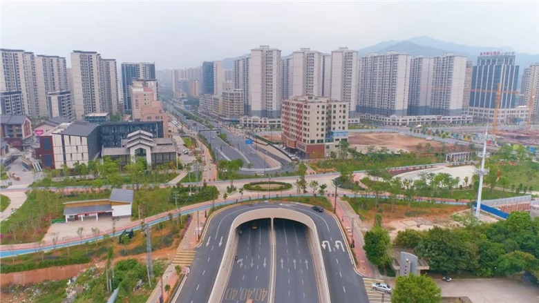 江南新城地下综合管廊项目是梅州市重点民生工程,2015年10月,通过公开招标,该项目交由广东华隧建设集团建设实施。2021年1月28日,该项目的地上部分——绿轴花园广场已经正式对外开放,迅速成为了梅州市民休闲打卡的网红景点。此外,整个项目还包括了30条道路建设,其中9条是长达17KM的地下管廊道路。