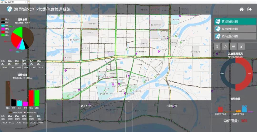 建设与管理一体推进。着眼服务城市应用,经脱密处理后,将“一个平台、两大系统”提供给管线权属单位免费使用,并面向项目建设单位提供查询服务。出台《澧县城区地下管线管理办法》,明确规划、设计、质量监督、管线等部门职责,加强对地下管线规划、设计、施工、验收全过程的监督管理。建设单位在办理工程规划审批前,必须通过管线系统查询取得施工地段地下管线现状资料;在办理工程竣工备案前,必须移交地下管线竣工测量数据,促进系统更新。截止目前,已为城区39个新建、改建项目提供了地下管线资料查询服务,有效避免了因盲目开挖造成的地下管线事故发生。