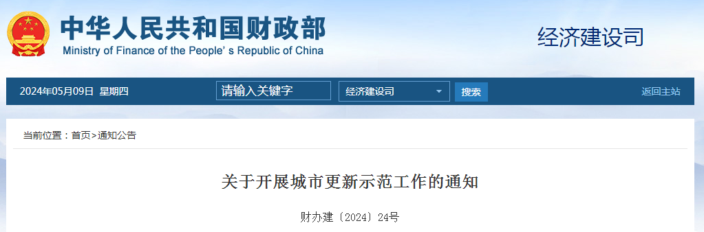 财政部、住房城乡建设部联合开展城市更新示范工作